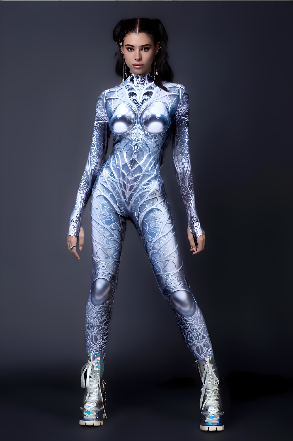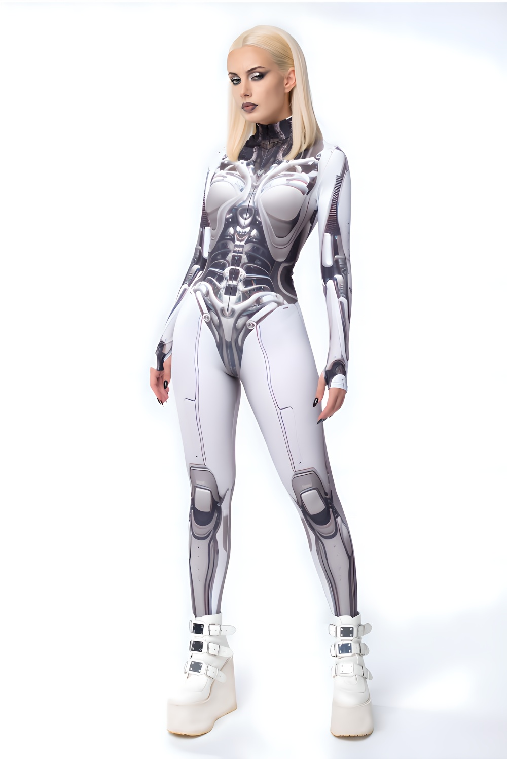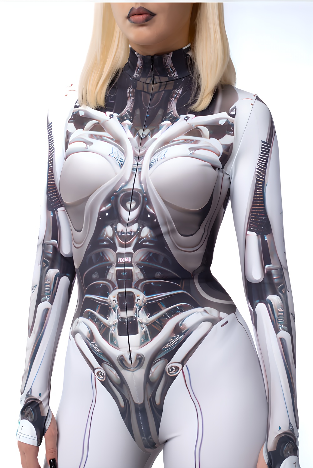 Jumpsuit unisex a stampa digitale Mech, con collo alto, maniche lunghe e zip frontale. Realizzata in 90% poliestere e 10% spandex, tessuto elasticizzato e confortevole. Perfetta per Halloween, carnevale, party, sport, yoga e performance sceniche, offre stile e funzionalità in un unico outfit originale.