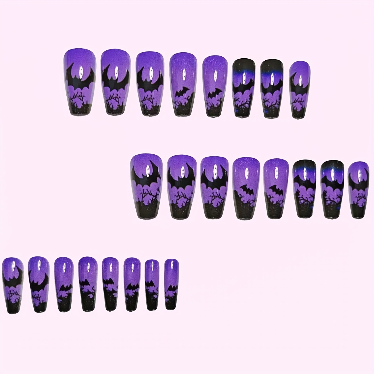 24pcs Full Cover Bat Wraps Compatible for Halloween Costumes - Detachable Bat Wing Shards, Glossy Machine Nails (24pcs) for Hands & Feet, Application, No Removal
