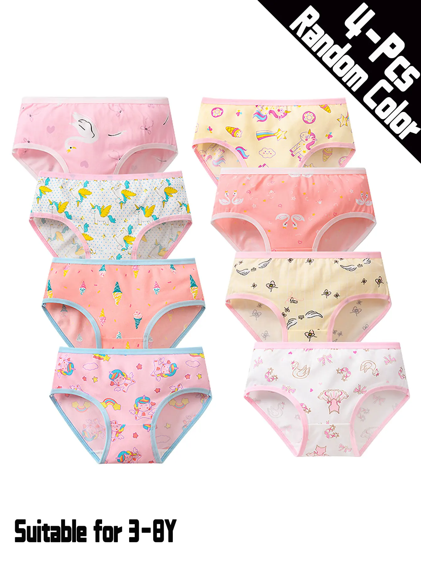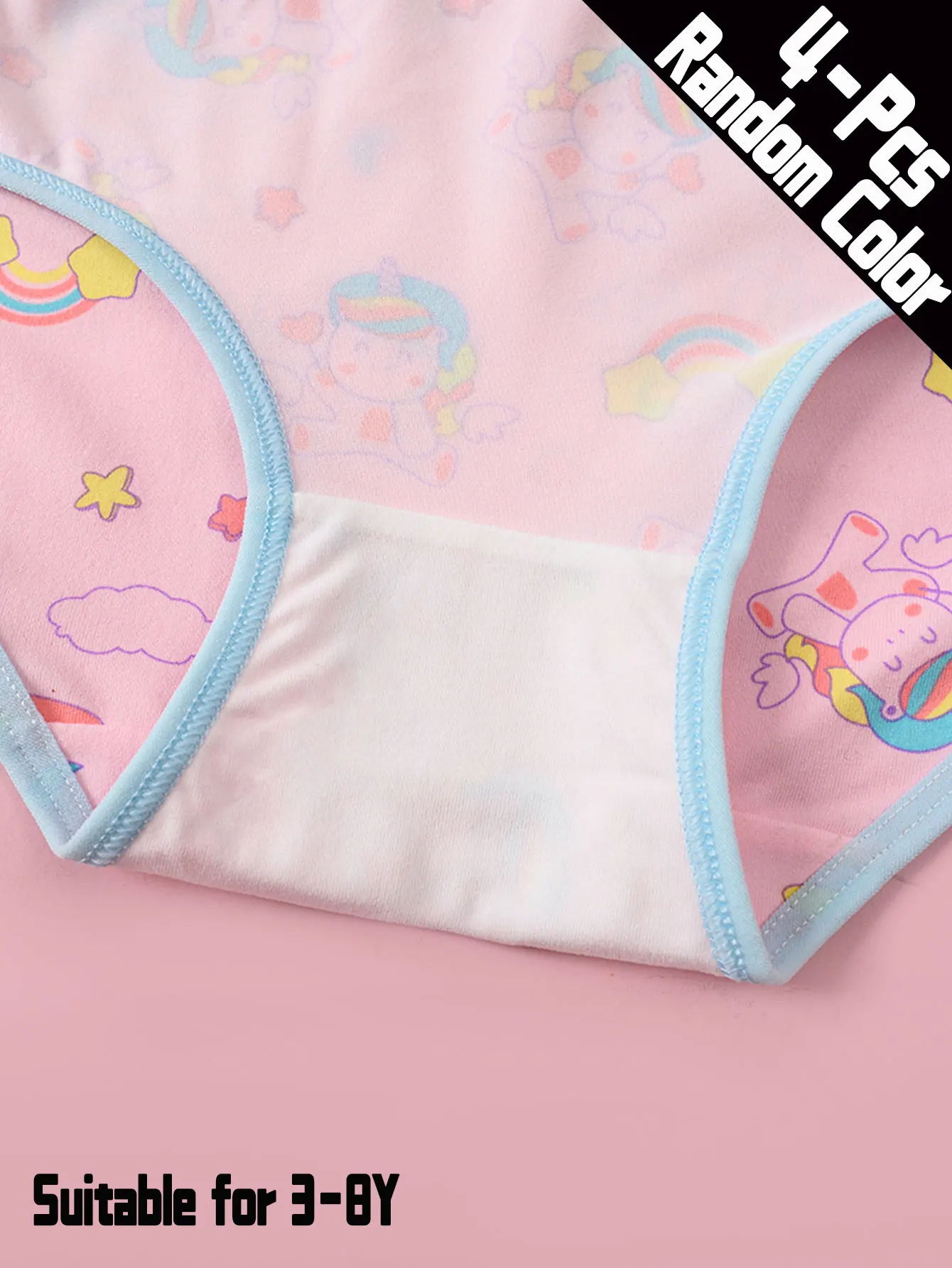 4-Pack Kids' Comfortable Breathable Skin-Friendly Cartoon Patterned Triangle Underwear for Ages 3-8