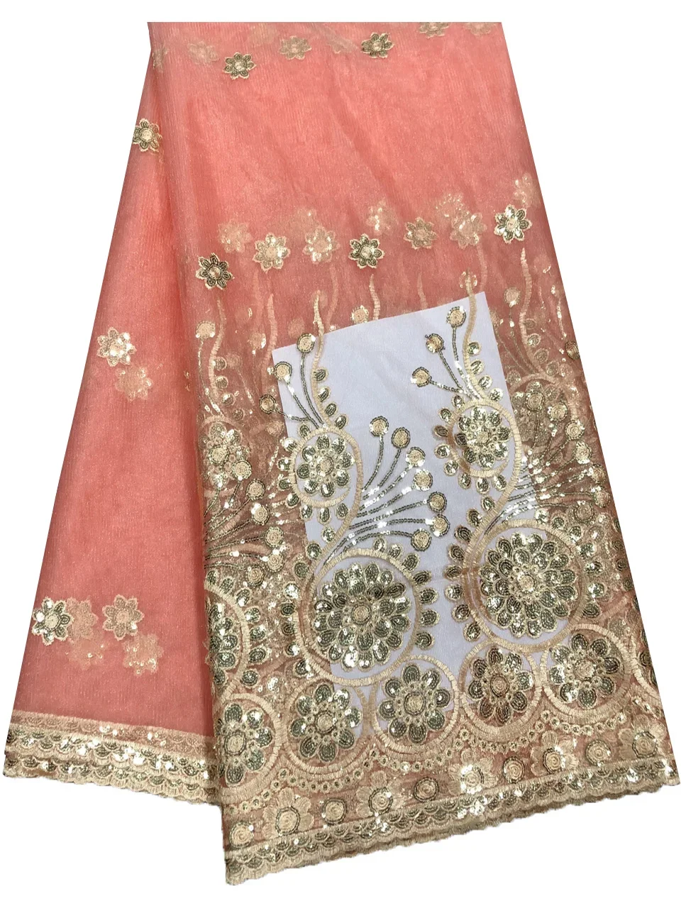 5yards/lot 2025 High Quality Nigerian French Lace African Lace Fabric for Party Dress Peach Africa Lace Fabric ALC