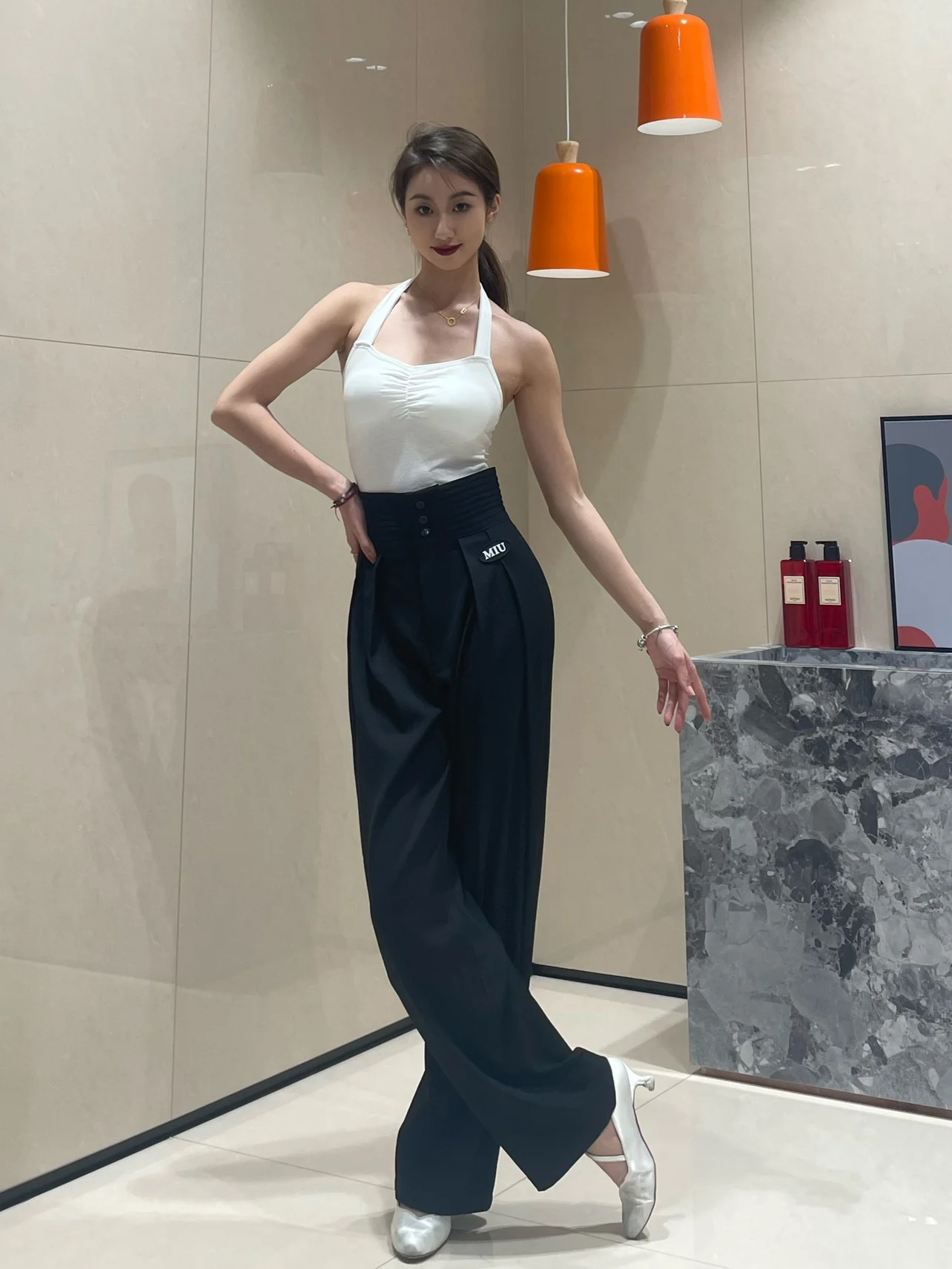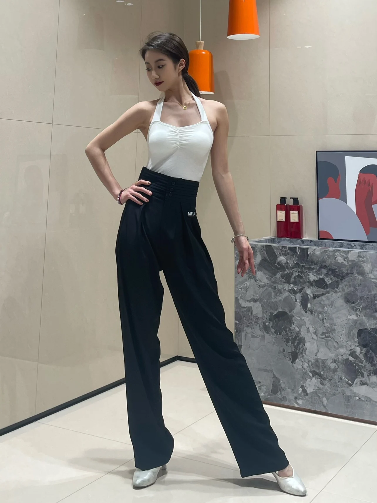 New Latin Dance Pants For Women Modern Dance Pants Button Trousers Chacha Rumba Tango Dress Latin Performance Clothes DN14203