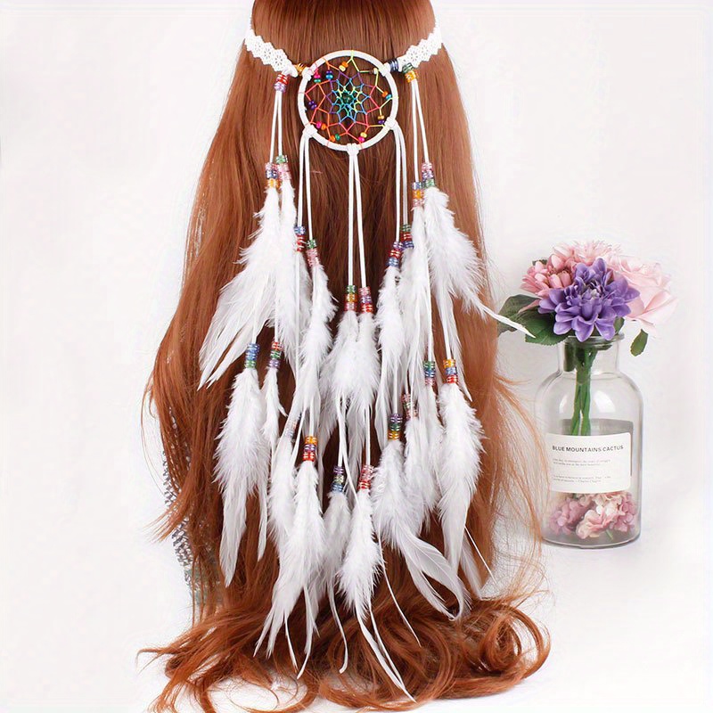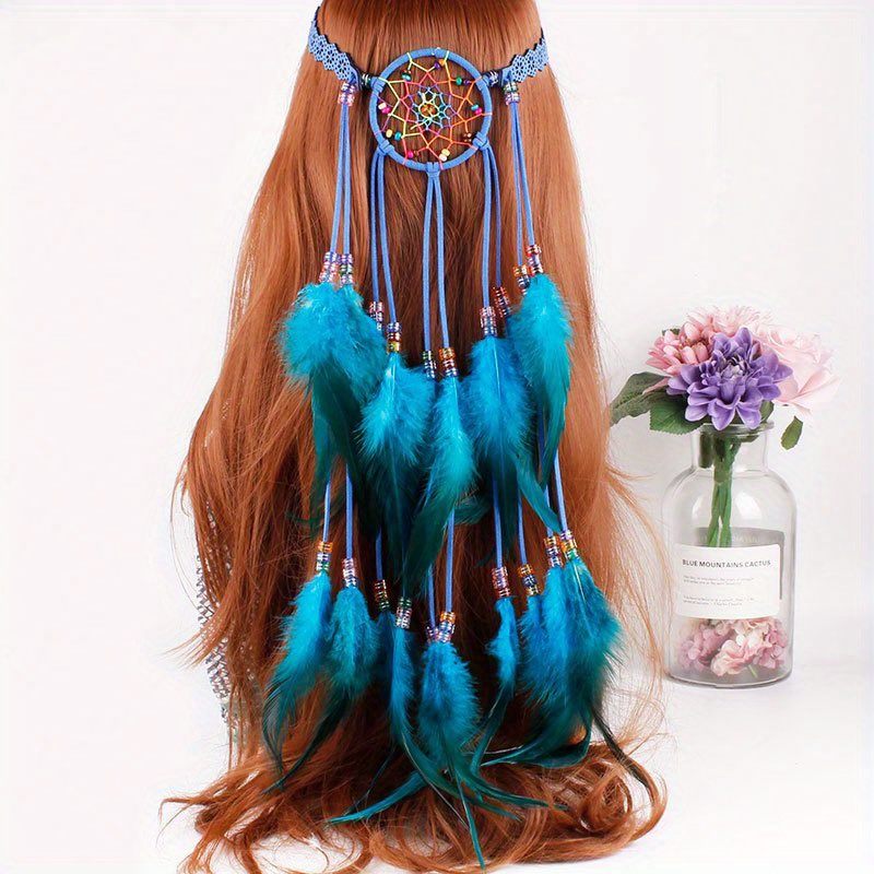 Copricapo in stile bohemian e hippie, impreziosito da piume simulate e nappe lunghe decorative. Un accessorio scenografico e originale, perfetto per completare costumi di Halloween, carnevale, balli in maschera ed eventi a tema. Ideale anche per feste, matrimoni, compleanni e spettacoli di danza, dona un tocco tribale ed elegante a qualsiasi outfit.