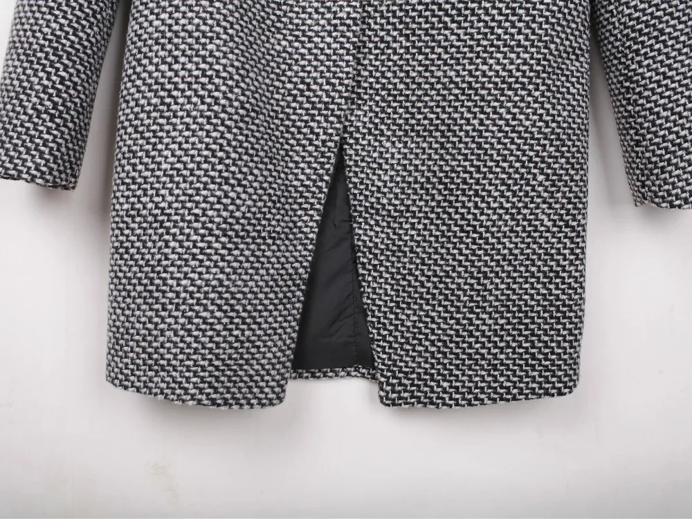 Women's Woolen Coat Arrive European Female Spring European Leg Houndstooth Windbreaker Jacket Plus Size Long Winter Coat